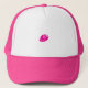 Make a statement with this custom "E" text printed trucker hat in white and hot pink. Featuring bold hot pink lettering, this adjustable hat offers a comfortable fit with its breatheable mesh back, perfect for casual wear, outdoor events, or showing off your personal style.