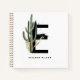 Customisable letter E monogram notebook featuring watercolor cactus, faux gold foil leaves and black watercolor brush accents. Personalise this tropical monogram notebook by adding your name or other details. This boho letter E monogrammed notebook will be perfect as a gift. Other letters are available.