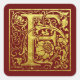 Charming decorative letter F initial monogram, calligraphy style typography, first letter in red and faux gold (shades of yellow with highlights and shadows to simulate metallic gold leaf gilding texture).