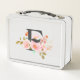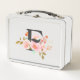 This is a standard metal lunchbox that appears to work just fine. We designed this box ourselves with an uploaded photo and custom text on the front and back. It looks absolutely beautiful except the front of the lunchbox is not centered like it shows in the photo. The print borders don't align with the inset flat part of the box where the preview photo online showed it perfectly centered in there. The back looks nice and centered though.
