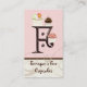 Letter F Monogram Custom Business Cards for your cupcake or other bakery business. Sweet and Contemporary! This business card design features three hand painted cupcakes in chocolate brown and soft pink and cream. The Monogram Letter is in “chocolate” and will appeal sweet lovers everywhere! The background is a soft shell pink with latte coloured swirls over a cream crackle finish and a chocolate brown stripe. This design is perfect for your wedding shower, bridal shower or for businesses such as wedding coordinators, event planners, bakeries, bake shops, custom wedding cake designers, speciality cupcake services and more. Every letter of the alphabet is available, if you don't see what you want just email us!