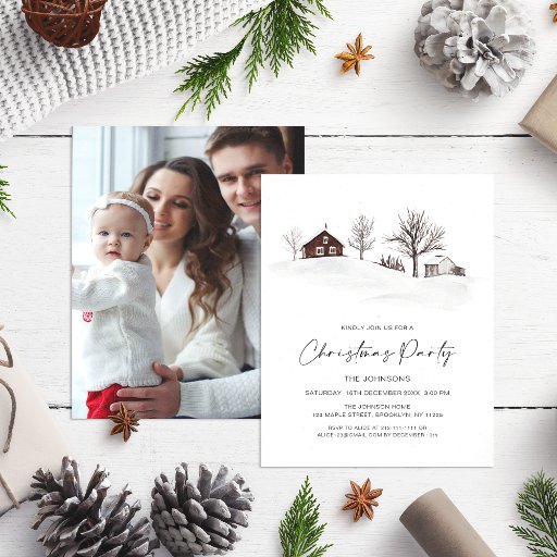 Letter from Santa to baby Christmas Monochrome Winter Landscape Holiday Card. An elegant letter from Santa to baby in a modern style featuring monochrome winter landscape in black and white colours. Stylish and elegant design.