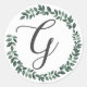 Letter G Monogram Minimalist Botanical Leaf Wreath Classic Round Sticker