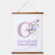 Initial & Name with Floral Design on a Wall-Hanging Tapestry. Design features the recipient's Monogram & Name with Flowers either side in a water colour pastel style. Initial is the letter G. Example shows Georgina.