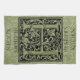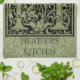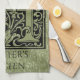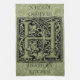 Charming decorative letter H initial monogram calligraphy style typography first letter in black over vintage sage green - avocado green book lining with off white Ginkgo biloba leaves.