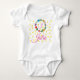 Bodysuit for baby girls monogrammed with the letter J in pink inside a floral frame and the name Julia underneath.