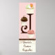 Letter J Monogram Custom Business Poster for your cupcake or other bakery business. Sweet and Contemporary! This business advertising design features three hand painted cupcakes in chocolate brown and soft pink and cream. The Monogram Letter is in “chocolate” and will appeal sweet lovers everywhere! The background is a soft shell pink with latte coloured swirls over a cream crackle finish and a chocolate brown stripe. You can customise the text using the template field. This design is perfect for your wedding shower, bridal shower or for businesses such as wedding coordinators, event planners, bakeries, bake shops, custom wedding cake designers, speciality cupcake services and more. Every letter of the alphabet can be created for you just email us!