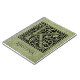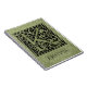 Charming decorative letter K initial monogram calligraphy style typography first letter in black over vintage sage green - avocado green book lining with off white Ginkgo biloba leaves.