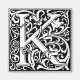 This initial K is part of a complete series of upper case William Morris inspired typography initials. The black and white lettering is highly decorative, styled after the fancy typography of the middle ages. Cute and trendy, this is a vintage chic monogram K - letter K- swirly K . Customise this vintage monogram by changing the background colour; just choose "edit design", and edit background colour. There is a complete alphabet of these letters. If you need a different letter, please visit the antiqueart store.