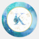 * LETTER K - Pastel Beach Watercolor INITIAL MONOGRAM Nautical Beach colours such as Aqua Turquoise and Blue with Gold line drawing of Sea Shell, Sea Turtle , and GOLD OUTLINE of a Bikini Swim Suit Bathing Suit and more Beach Nautical touches decorate this Modern Trendy Gold Glitter , White and Ocean Beach Watercolor Letter Seal / Envelope Seal Sticker.