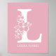 Personalised Floral Monogram Letter L Name Nursery wall art print perfect to decorate your little one's nursery. Add their name and even personalise it further by changing the colour of letter and background. To personalise and change colour of background click on "Personalise This Template" then "Edit Using Design Tool". From there you can change background colour or Big Floral Initial colour to your liking. If you need help customising this template to your liking please contact me directly and I will be happy to help. Order yours today!