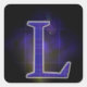 "L." (for example, your initials) "Nice when your name starts with the L or another." Behind the letter is a grid and mysterious clouds with a light that shines on it. The letter L is filled with a plaque pattern and a gray edge around it, colors blue, purple, yellow, and black.