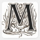 The brown letter is outlined in white and backed by swirls and tendrils.
