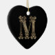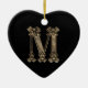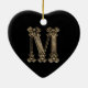 Photo of the letter "M" from a vintage initial pin. The image of the letter "M" is on both sides of the ornament.