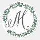 Letter M Monogram Minimalist Botanical Leaf Wreath Classic Round Sticker