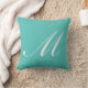 Personalised monogram pillow with a classic script letter M on a Turquoise background. Made in the USA from machine washable cotton or polyester. Perfect for Mackenzie, Madeline, Madison, Maria, Mariah, Marissa, Mary, Megan, Michelle, Miranda, Monica, Morgan or anyone else who's name begins with the letter M.