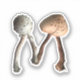 Show your love of mushrooms, the forest and that deep earthy goodness with this capital letter M formed with mushrooms. The mushrooms are white and brown and form two arches for the capital letter.