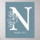Letter N Floral Monogram Name Nursery Modern Poster