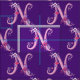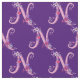 Pretty whimsical initial N drawing converted to graphic letter art in shades of purple and pink on a dark purple background. Background colour can be changed to your own colour choice if required. Personalised with your own initial this fabric reads N, ideal for customised sewing projects. Other letters available. © Original drawing and design by Sarah Trett. www.sarahtrett.com for www.mylittleeden.com