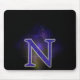 Muismat met de letter N. (bijvoorbeeld je initiaal) Leuk als je naam met de N begint of die van een ander. Achter de letter is een raster en mysterieuze wolken met een licht die erop schijnt. De letter N is gevuld met een plaid patroon en een grijze rand erom heen. kleuren blauw, paars, geel en zwart.