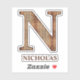 Letter N with rustic aged wood board texture. Customise with your name or message in brown matching lettering.