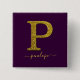 Letter P gold simulated glitter monogram set on a solid colour. Personalise with your name or message in golden yellow script font.