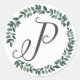 Letter P Monogram Minimalist Botanical Leaf Wreath Classic Round Sticker