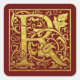 Charming decorative letter R initial monogram, calligraphy style typography, first letter in red and faux gold (shades of yellow with highlights and shadows to simulate metallic gold leaf gilding texture). This product can be customised with any colour and gold.