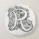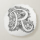 Letter R mono doodle tangled pattern round pillow