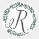 Letter R Monogram Minimalist Botanical Leaf Wreath Classic Round Sticker