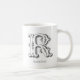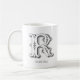 Customisable white coffee mug featuring the letter R in unique dark grey coloured typography. Add your name using the personalisation feature.