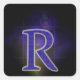 Stickers with the letter "R." (for example, your initial) Nice when your name starts with the "R" or that of another. Behind the letter is a grid and mysterious clouds with a light that shines on it. The letter R is filled with a flat pattern and a gray edge around it, colors blue, purple, yellow, and black.
