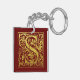 Elegant decorative letter S initial botanical monogram draped in leaves, vines and flowers. Calligraphy typography in William Morris style. First letter on deep red in bright faux gold. Shades of golden yellow with highlights and shadows to simulate metallic gold leaf gilding texture. This product can be customized with any background color of your choice.