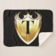 This sherpa blanket displays the capital Letter T inside of a golden coloured elegant decal with a unique font over the front panel with a delicate and soft feel perfect for picnics, outdoor events, and cosy winter snuggles. All blankets are made from 100% polyester printed mink with edge-to-edge sublimation printing and sturdy double edge stitching has soft Sherpa on the back with an off-white colour.