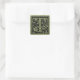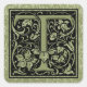 Charming decorative letter T initial monogram calligraphy style typography first letter in black over vintage sage green - avocado green book lining with off-white Ginkgo biloba leaves.