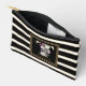 Letter T Floral Monogram Black White Gold Stripes Accessory Pouch