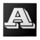 Ceramic letter tiles. Upper or lower case letter tiles. You customise with the letter or letters you need for your ceramic tile or mosaic sign. Letter tile for weather proof signs, house numbers. White on black background.