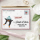 The envelope features a cartoon penguin with a light blue hat and ice skaters, on a white background with elegant snowflakes.