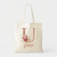 Letter U Blush pink Glitter Floral Monogram Tote Bag