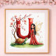 Standing serenely beside the letter is a gentle fairy with long, flowing black hair and rosy cheeks. She wears an exquisite gown that gradients from deep red at the bodied through coral to soft peachy-pink at the flowing hem, decorated with intricate golden swirl patterns and delicate embroidery throughout. Her magnificent butterfly-style wings feature warm peachy-gold tones with elegant spiral designs. The fairy's calm, peaceful expression and graceful posture embody the patience and wisdom associated with the tortoise.
