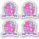 Knights princess style shield crest monogram letter V graphic art stickers in shades of pink, purple and grey. Personalise with your own name or family name beginning V, currently reads Victoria. Ideal for personalising your belongings if your surname or first name begins with the letter V. Unique unicorn head, tiara crown, and shield crest drawing and graphic art and design by Sarah Trett for www.mylittleeden.com