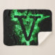 This sherpa blanket displays the capital Letter V inside of a glowing like green coloured effect decal with a unique font over the front panel with a delicate and soft feel perfect for picnics, outdoor events, and cosy winter snuggles. All blankets are made from 100% polyester printed mink with edge-to-edge sublimation printing and sturdy double edge stitching has soft Sherpa on the back with an off-white colour.