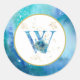 * Initial LETTER W monogram - Pastel Beach Watercolor INITIAL MONOGRAM Nautical Beach colours such as Aqua Turquoise and Blue with Gold line drawing of Sea Shell, Sea Turtle , dolphins and GOLD OUTLINE of a OCTOPUS and more Beach Nautical touches decorate this Modern Trendy Gold Glitter , White and Ocean Beach Watercolor Letter Seal / Envelope Seal Sticker.