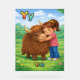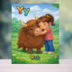 Cute and colorful alphabet poster featuring the letter Y with a gentle cartoon yak and a sweet little girl illustration hugging it lovingly.