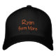 Red lettering embroidered on a hat. Suggested base: white hat.