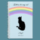 This hardcover journal honors the life you shared with your darling cat. The cover features a muted rainbow in the sky with a silhouette of a cat looking up at the rainbow. Above the rainbow the words, "Letters to my cat" appear. Below the cat silhouette you can customize the name of your cat and the dates. This is a beautiful cat memorial journal for you to turn it into whatever you like whether it is letters to your cat, stories about the life you shared, photos, etc.. It is all up to you. On the back side of the journal is a heart that reads, "Forever in my heart." Copyright Peaches the Tuxedo Cat