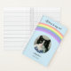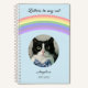 This heartfelt letters to my cat journal will give you a place to write your beautiful memories and even save some photos if you like or just write lovely letters to your feline friend. The journal features your cat's photo in the center with a muted rainbow overhead in a blue sky. The words, "Letters to my cat" appear above the rainbow. Your cat's name and dates can also be customized. The back side features the beautiful blue sky color along with a red heart with the words, "Forever in my heart." This would be a beautiful keepsake journal for you to cherish. Copyright Peaches the Tuxedo Cat