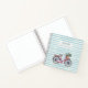 Cute and feminine personalised "Letters to my daughter" words and wisdom notebook with pastel blue watercolor stripes and bicycle with flower basket.