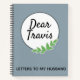 This sweet notebook journal features a grayish blue background and hand drawn greenery wreath, personalised with your husband's name. Bottom reads "LETTERS TO MY HUSBAND". You can also customise font style and colour, as well as the background colour.
