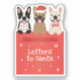 Illustration of three French Bulldogs popping out of a mailbox for letters to mail to Santa Claus.